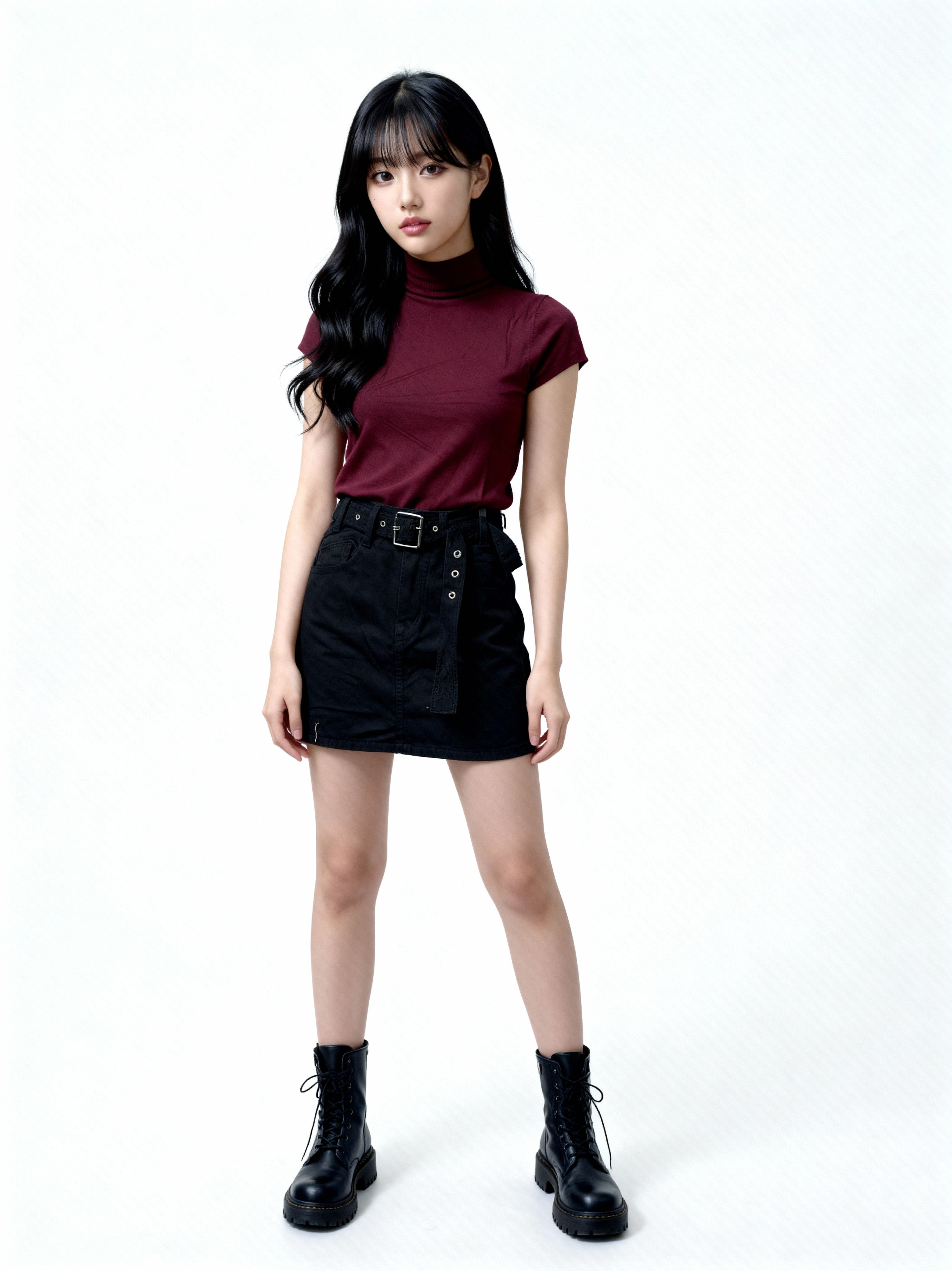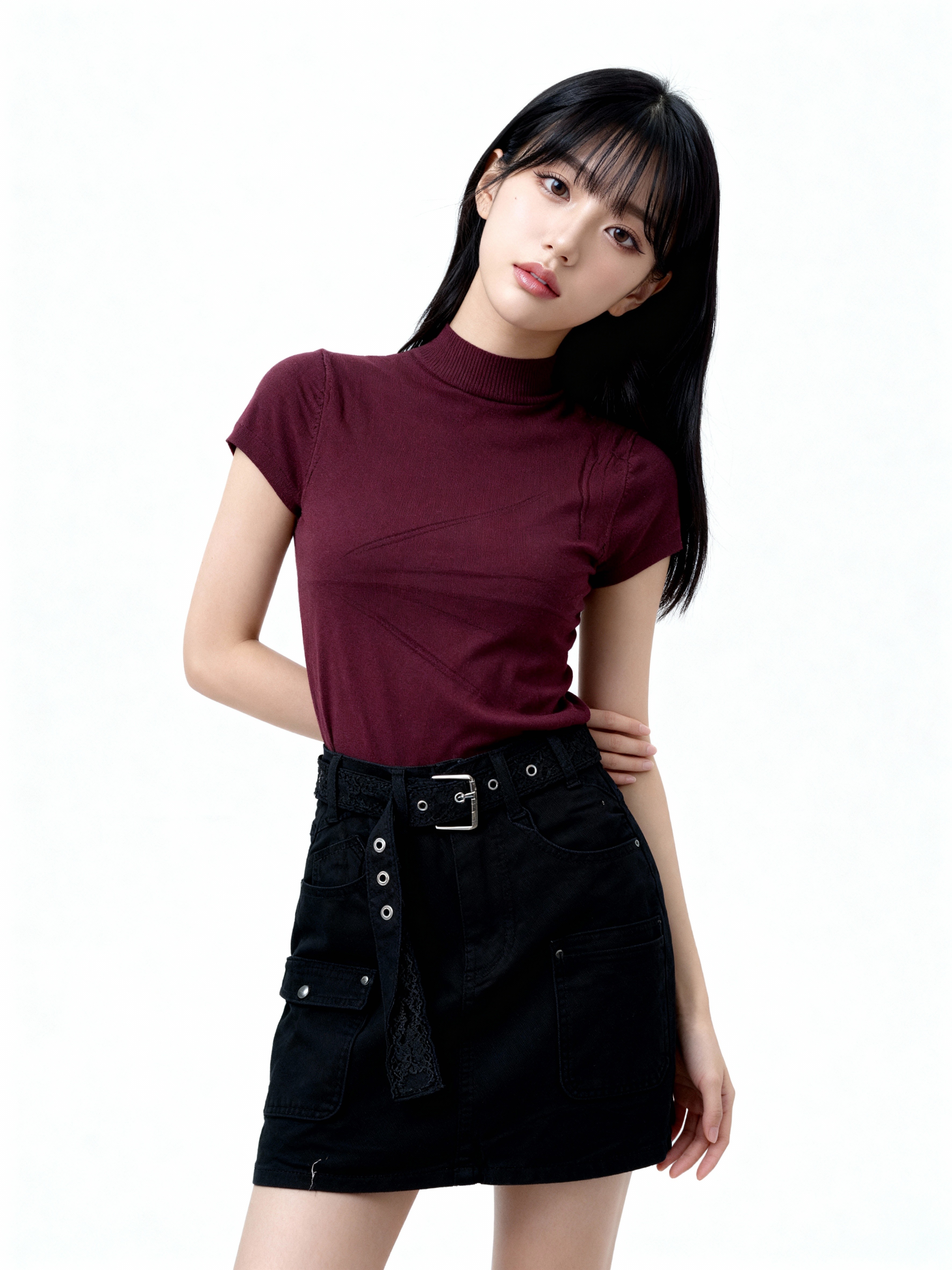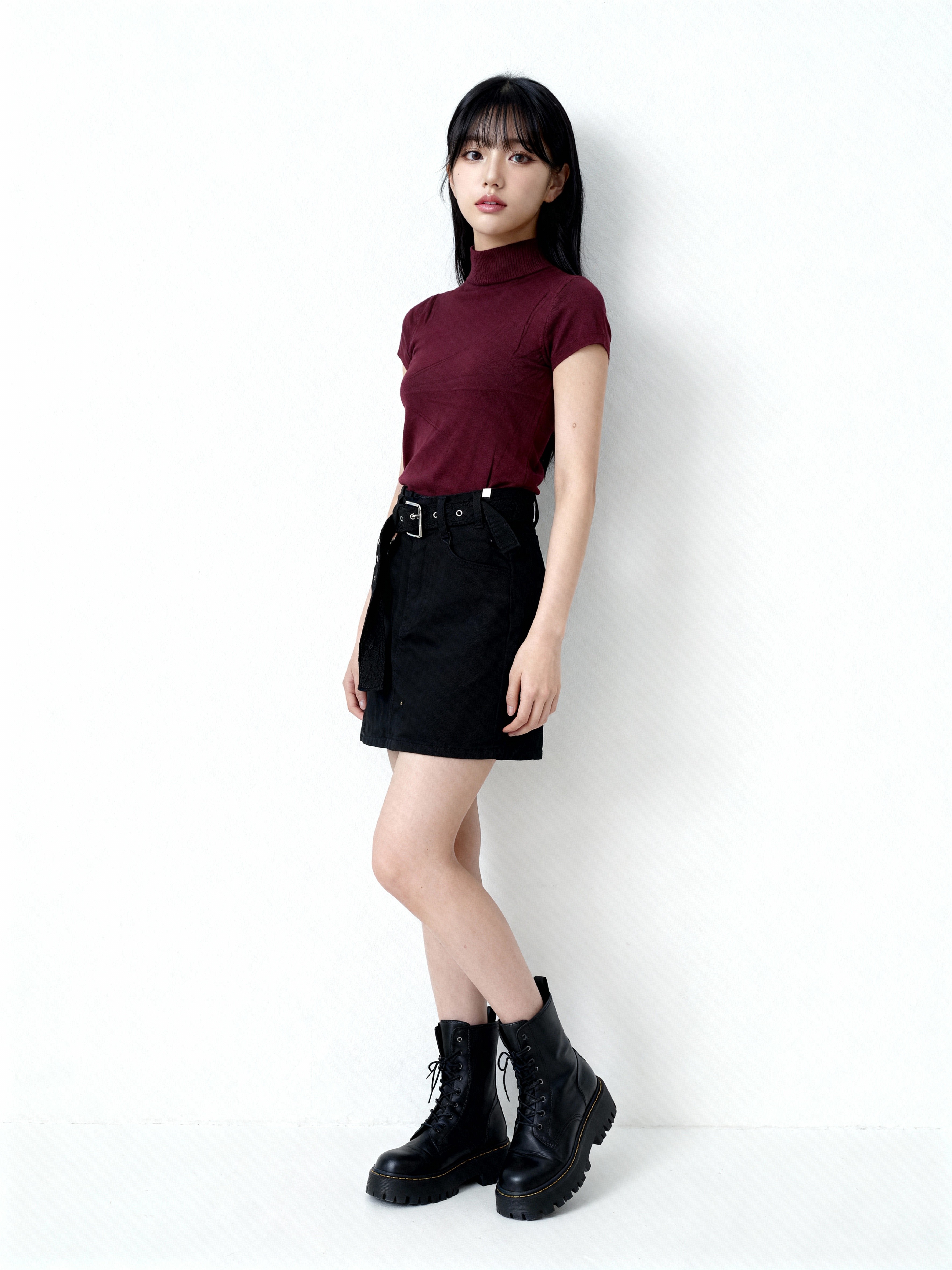 JR Black Denim Skort With Lace Belt