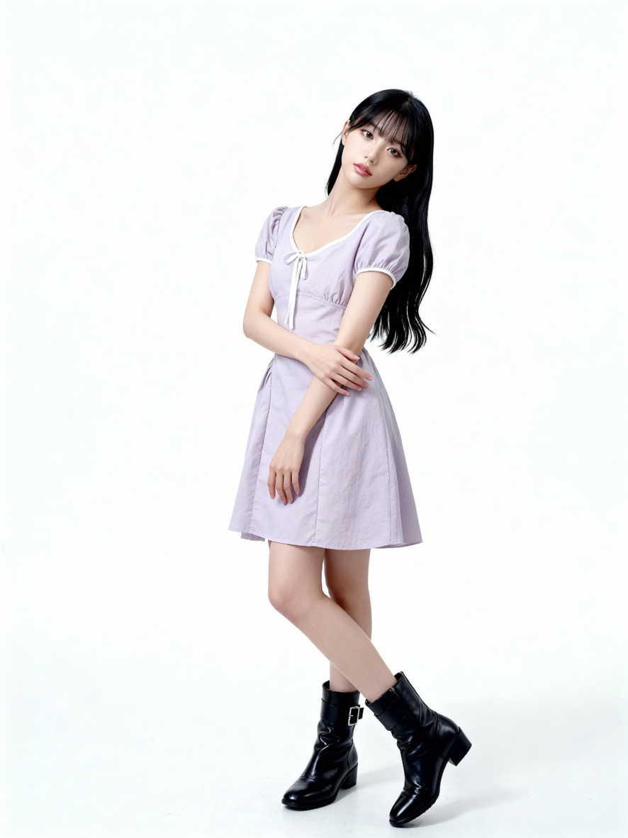 White Lining Side Runched Mini Dress